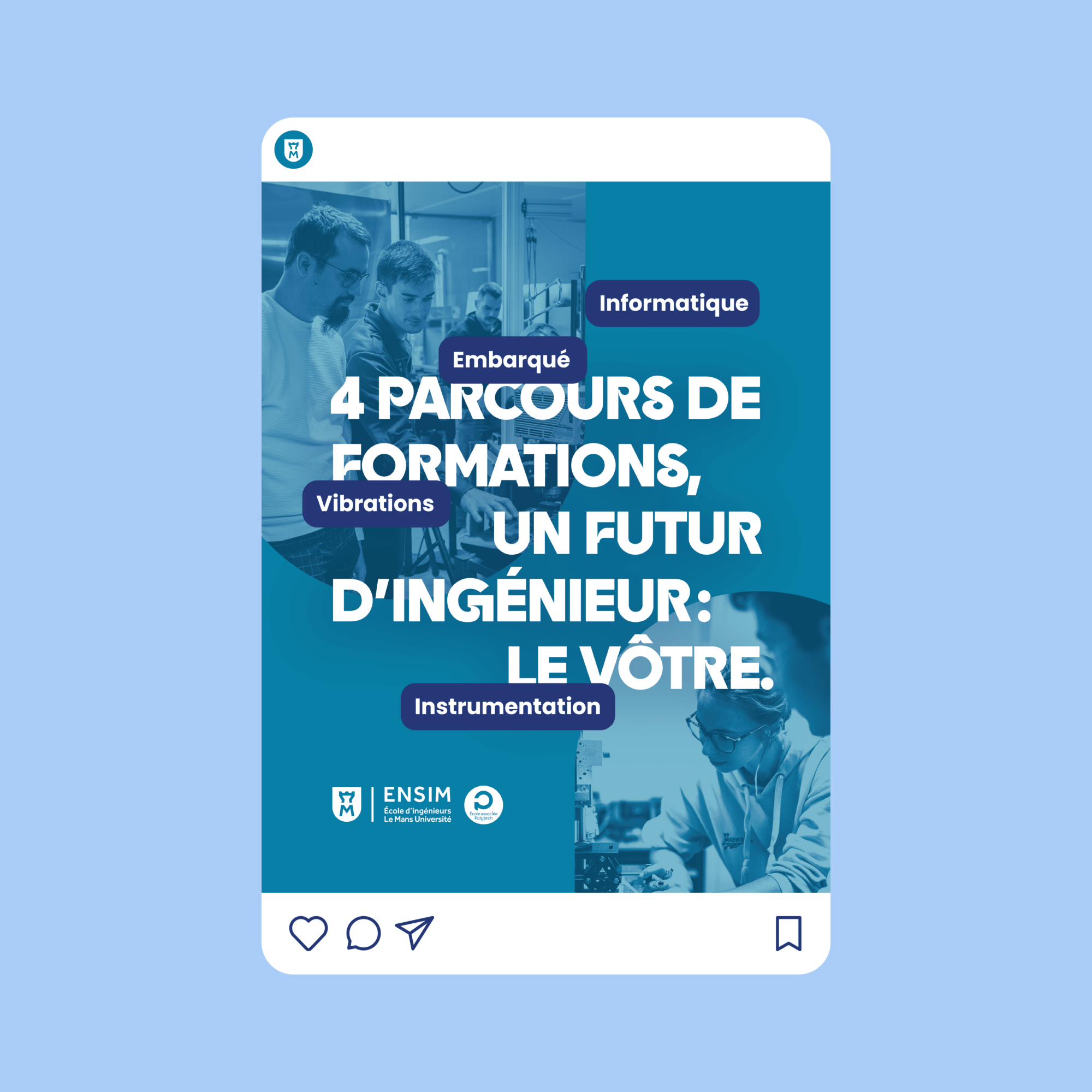 Pour cette deuxième vague de campagne de l’ENSIM, l’enjeu était d’adapter la prise de parole aux nouvelles attentes d’Andromeda afin d’optimiser la performance du dispositif. Campus Com a donc ajusté la campagne au fil de sa diffusion, en faisant évoluer visuels et contenus vidéo pour renforcer progressivement son efficacité.