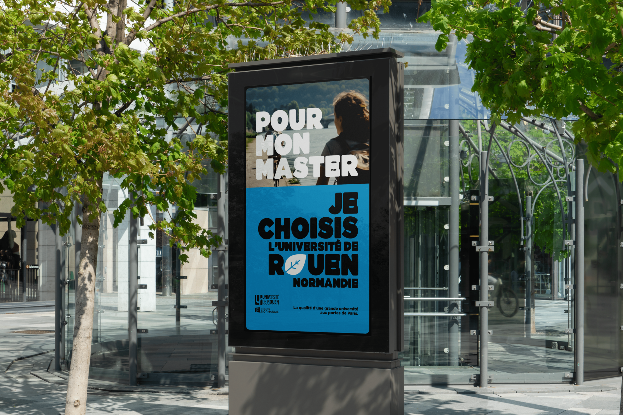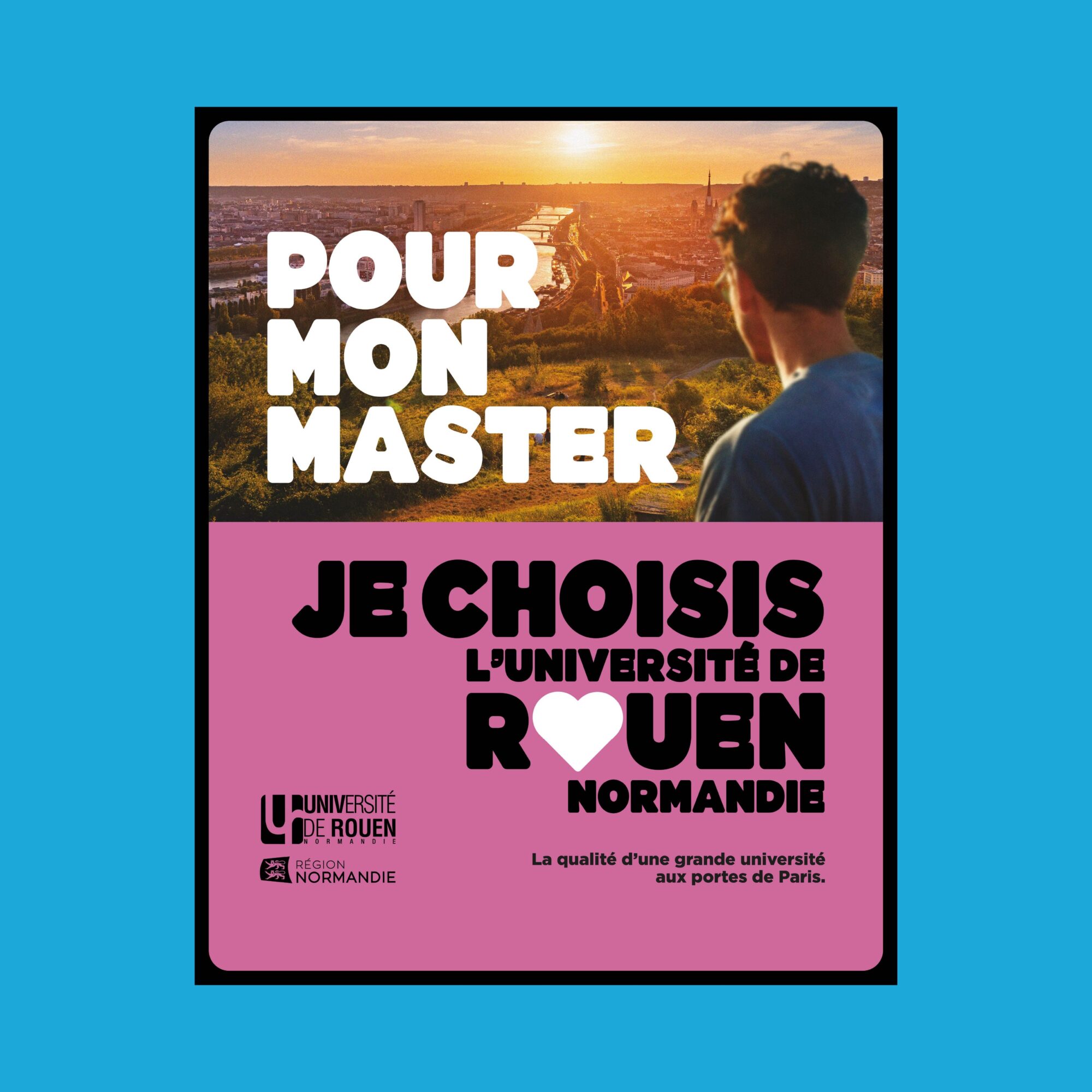 Nous avons d’abord travaillé à la définition d’un concept capable d’exprimer un choix affirmé : celui d’étudier à Rouen. L’idée directrice de la campagne – « Je choisi Rouen » – positionne l’université comme une destination d’études pleinement assumée par les étudiants. Cette prise de parole volontaire permet de renverser une perception parfois passive du choix universitaire et d’inscrire l’établissement dans une dynamique positive et attractive.