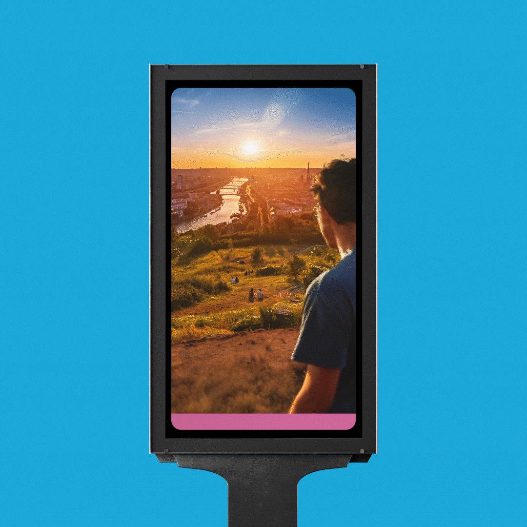 La campagne a été déployée dans un dispositif multicanal associant affichage et communication digitale. Des formats DOOH et abribus ont permis d’ancrer la prise de parole dans l’espace urbain, notamment à Rouen et en région parisienne, tandis que la dimension digitale a été activée via des campagnes social ads sur Meta et Google.